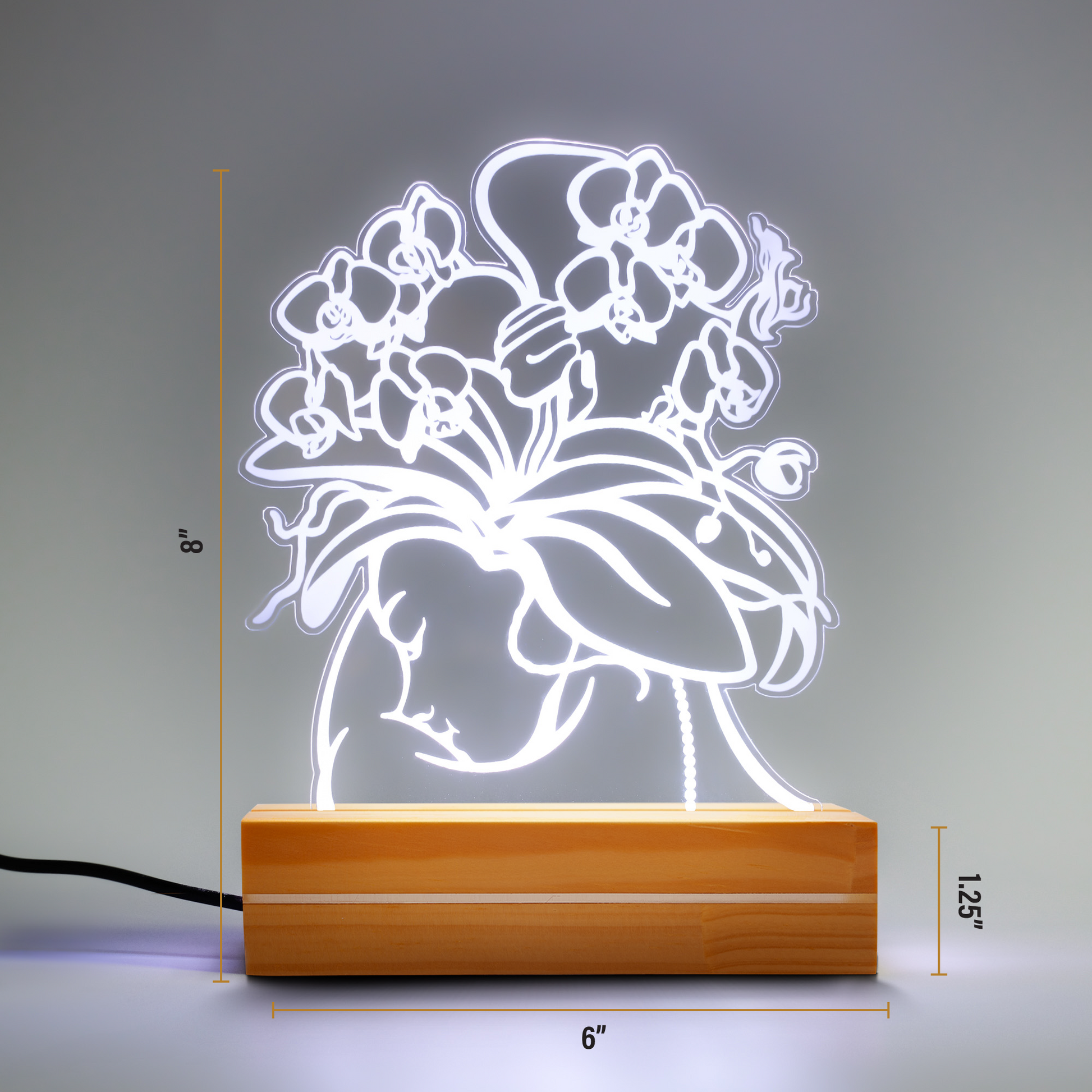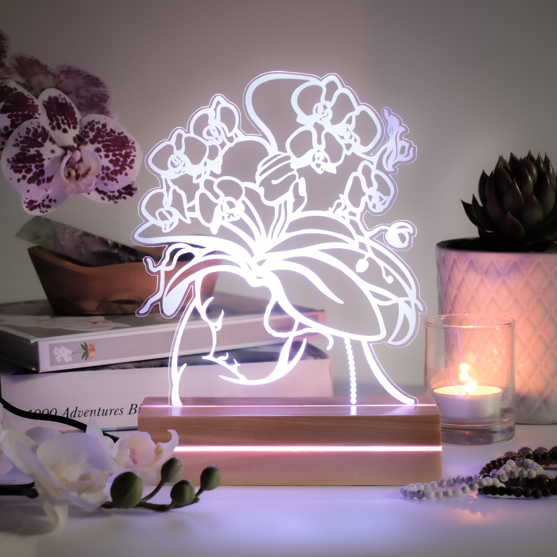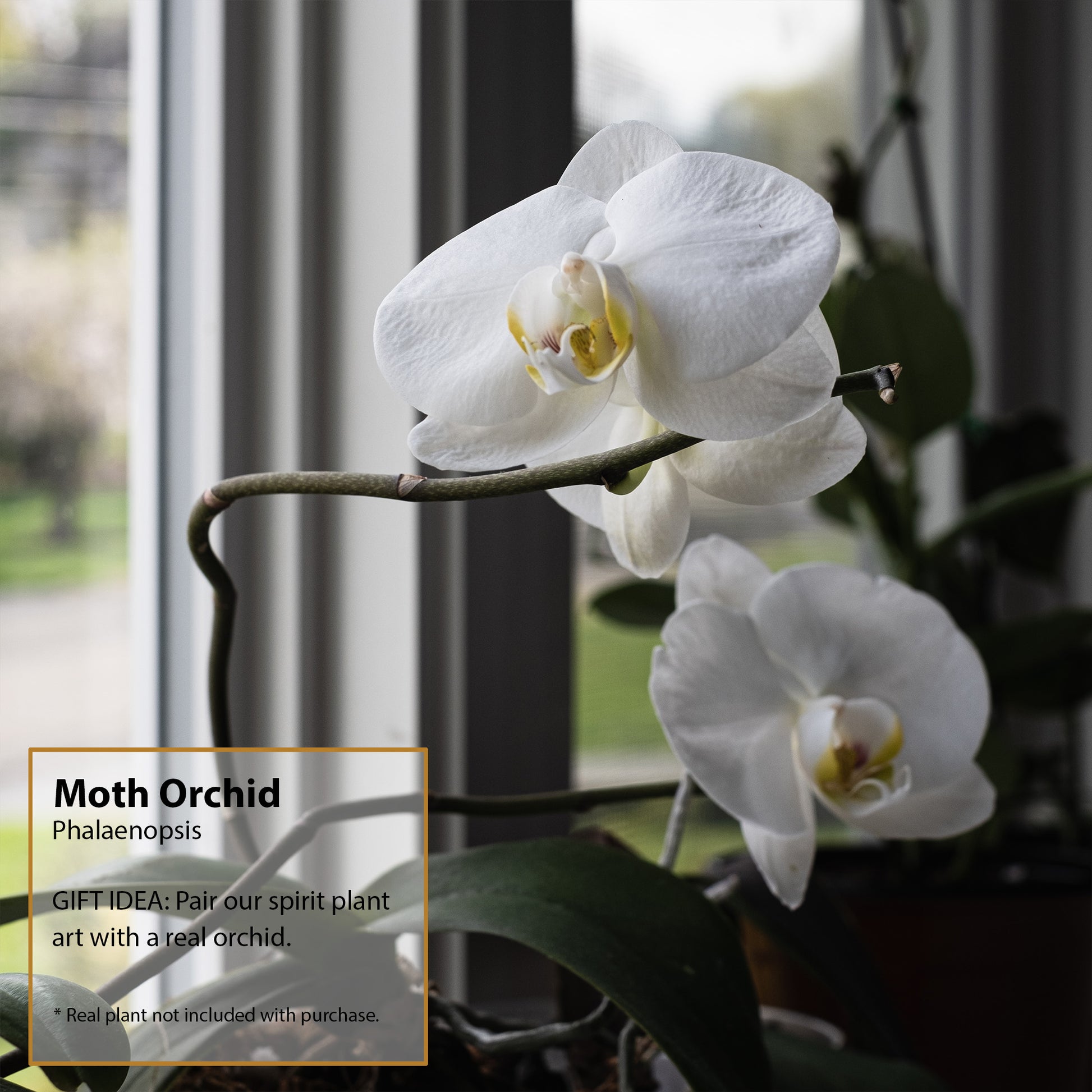 A crown jewel of any plant lover’s collection, this attention-grabbing Moth Orchid plant spirit can now reside by your bedside or anywhere you decide to display it. She embodies the striking beauty and confidence of the real plant along with its luscious cascading blooms. Relax to her calming glow or gift to an orchid lover in your life.